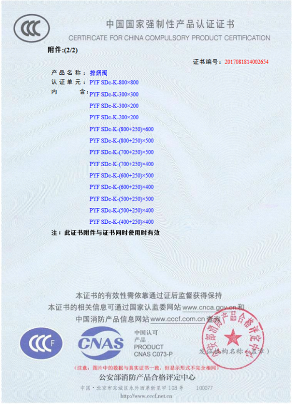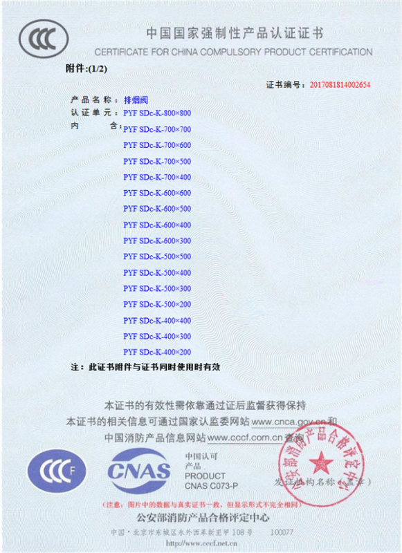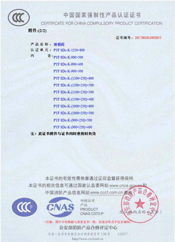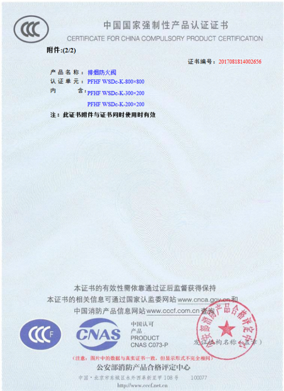 產(chǎn)品全通過(guò)國(guó)家消防檢測(cè)中心檢測(cè),獲得CCC證書